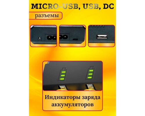 Зарядное устройство HD8863 , 2 слота для литиевых аккумуляторов + USB 2.0 microUSB 14500 18650 26650 DREAM информация: