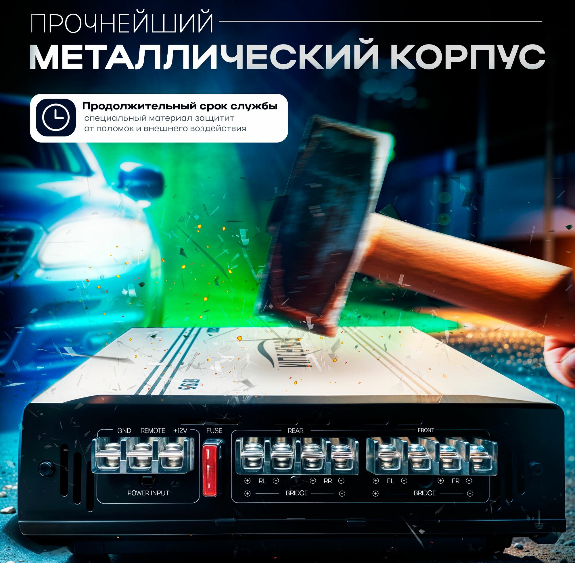 Усилитель автомобильный для ВАЗ 2123/455 на 2000W, 4-х канальный