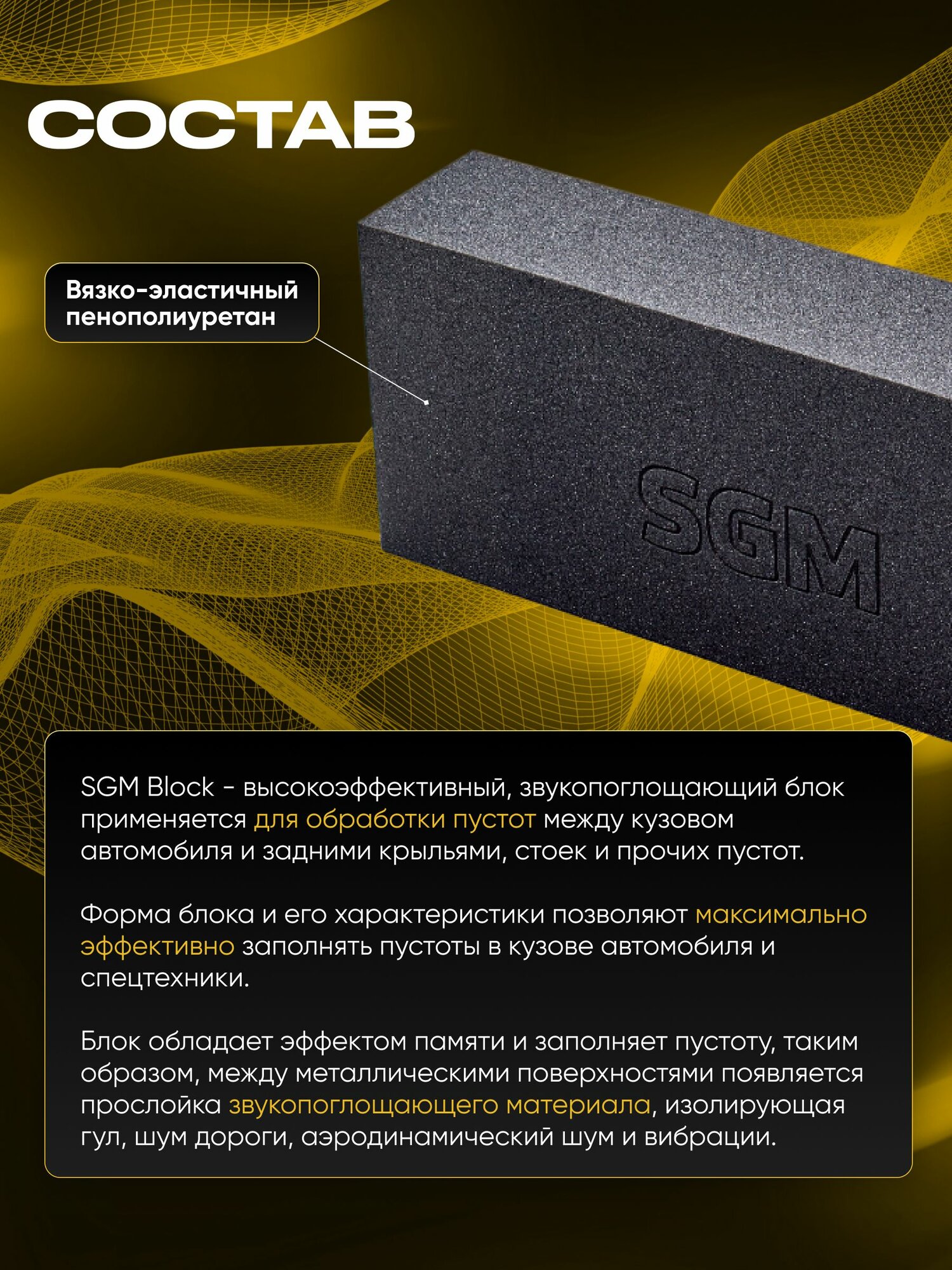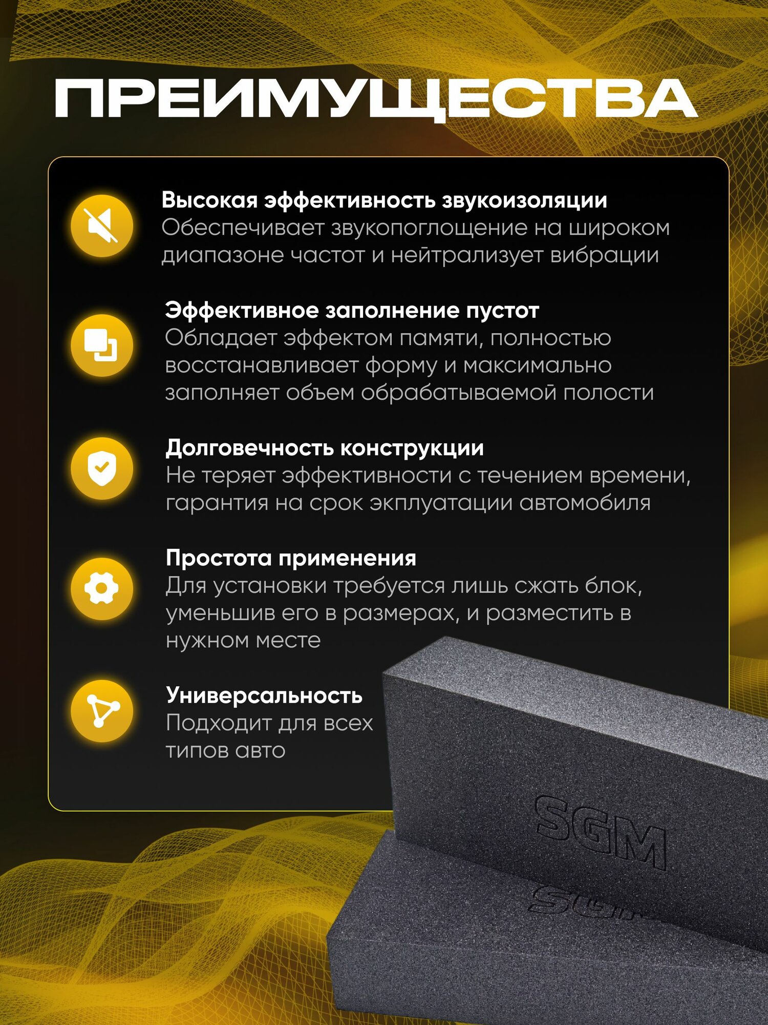 Шумопоглощающий блок SGM для заполнения пустот автомобиля, черный / шумоизоляция для авто информация: