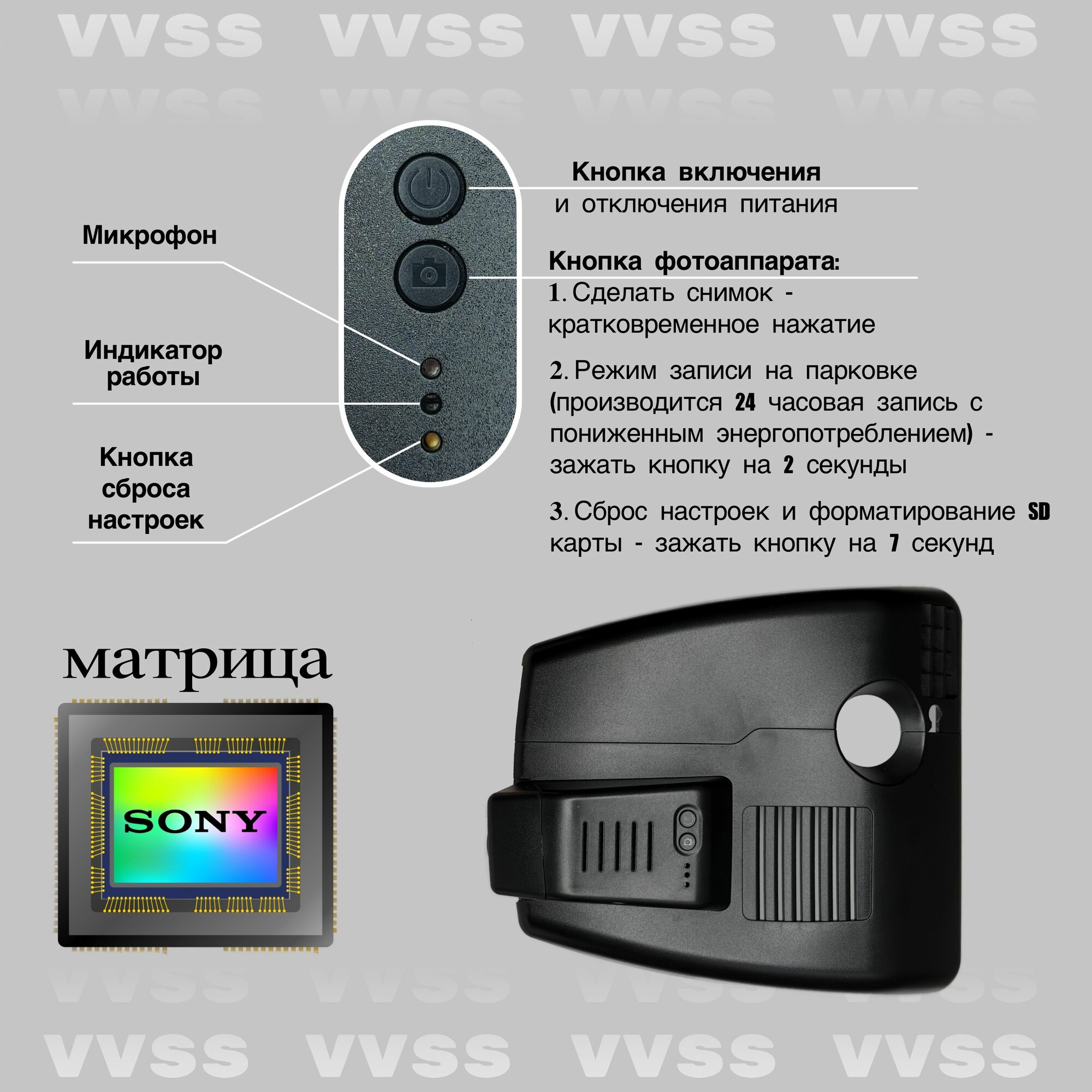 | Особенности видеорегистратора | Голосовые подсказки, Режим фотосъемки |