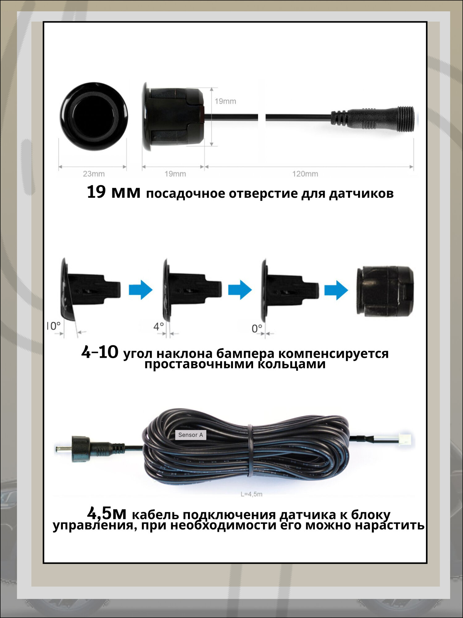 Парктроники на автомобиль, 4 датчика, черный, 34U-4-A-b информация: