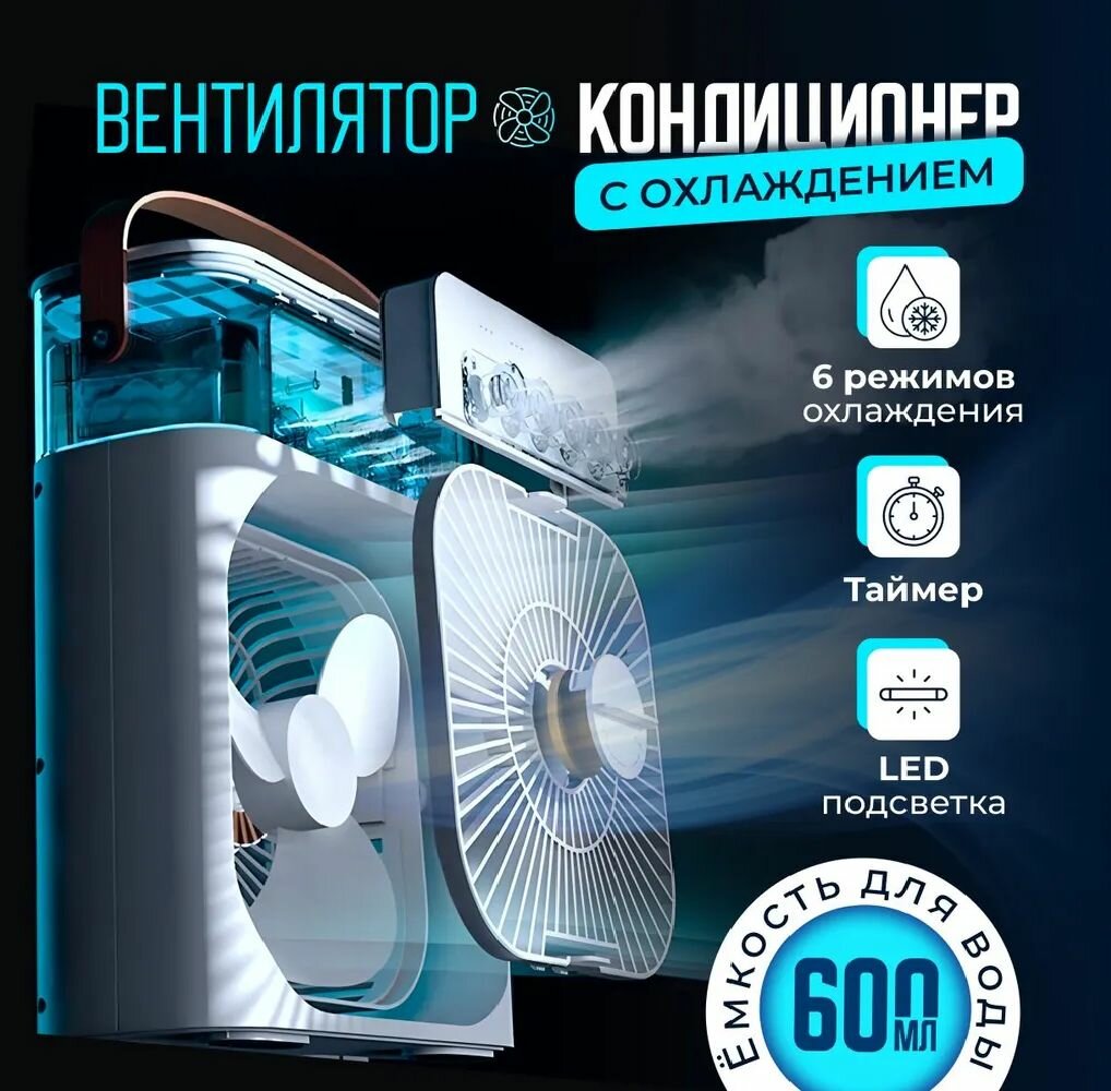 10 цен на Настольный вентилятор-увлажнитель, с подсветкой, белый, 3 скорости, 20 Вт