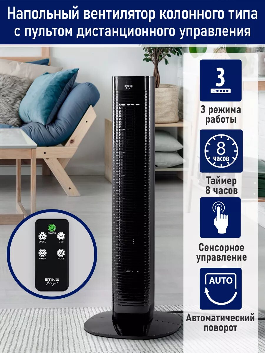 Напольный вентилятор колонного типа STINGRAY ST-FN4122A черный информация: