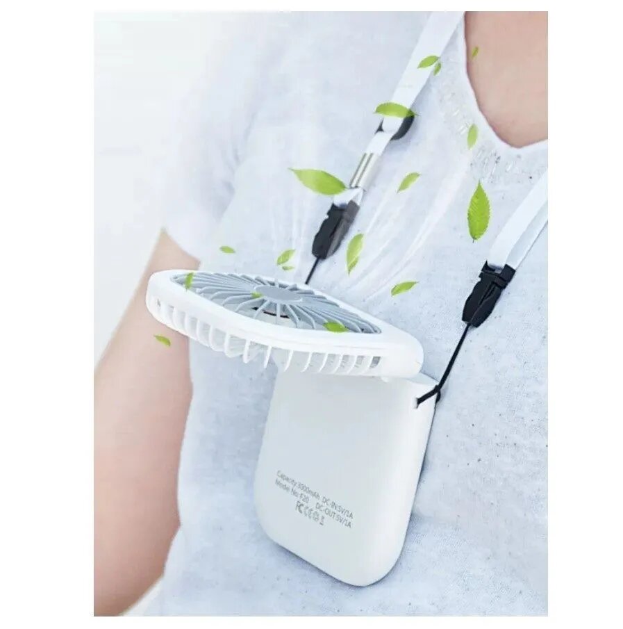 Вентилятор ручной бесшумный портативный мощный с павербанком, FS-F20 White белый информация: