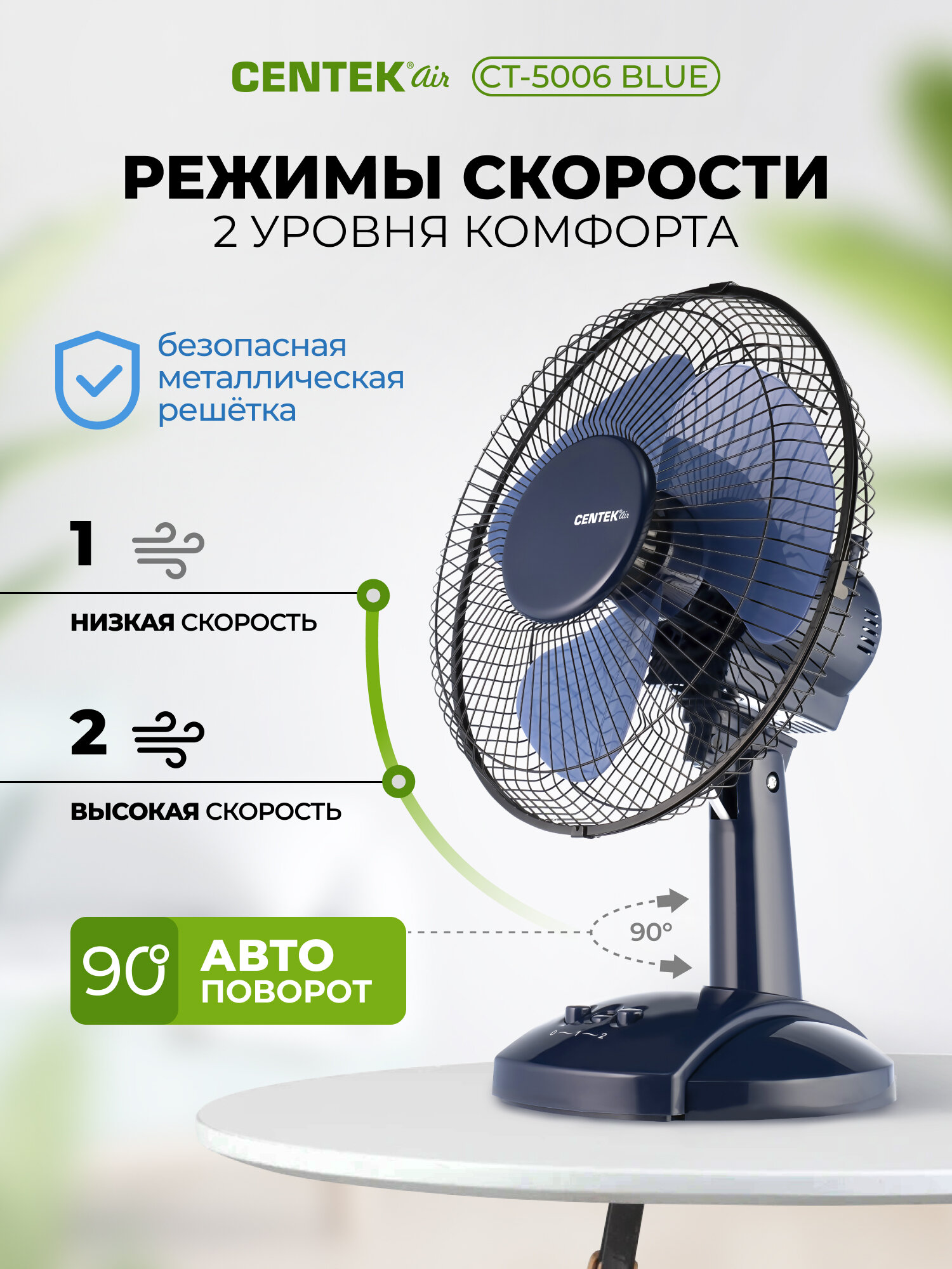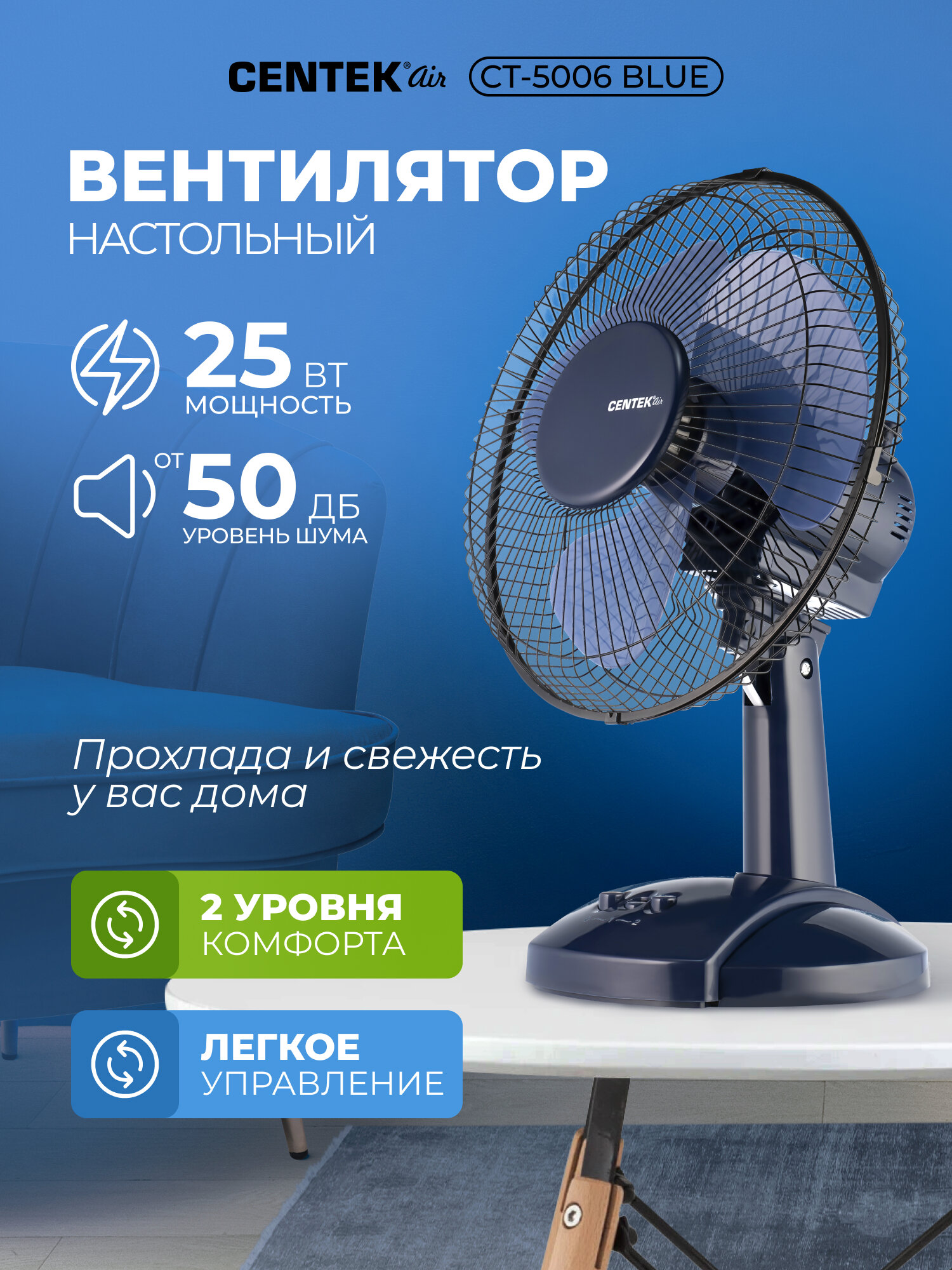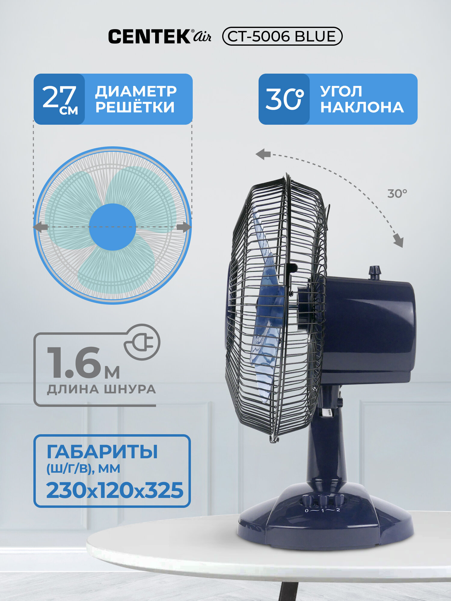 10 цен на Вентилятор настольный CENTEK CT-5006, голубой, 25Вт, d-27см, решетка-сетка, 2 скорости, автоповорот