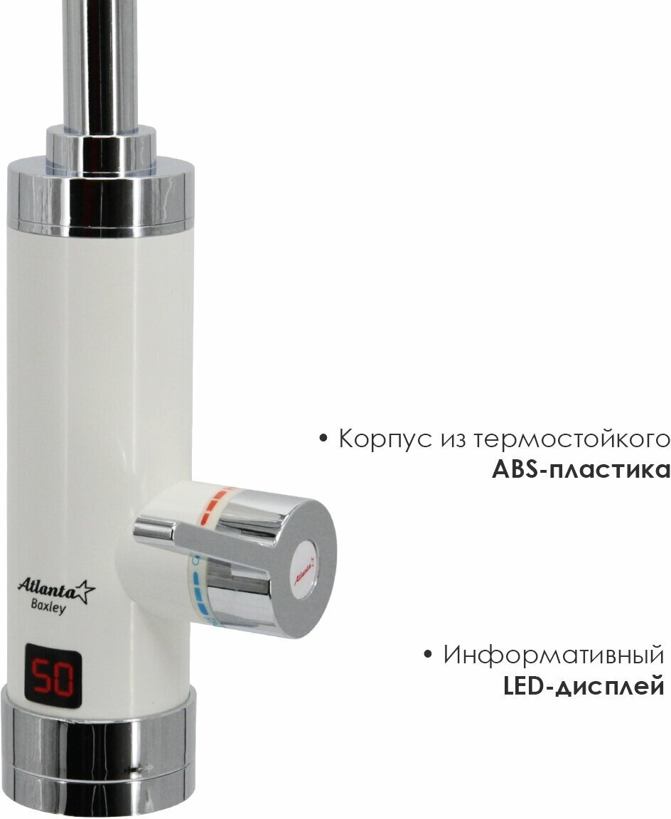 10 цен на Водонагреватель Atlanta ATH-7429, 3500 Вт, гибкий излив, LED дисплей, нагрев потока в диапазоне 30-85 °C.