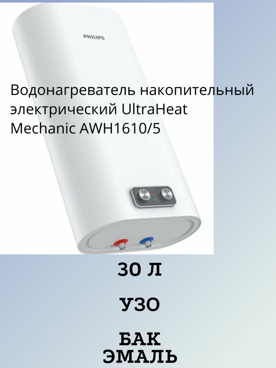 Отзывы на Водонагреватель накопительный электрический PHILIPS UltraHeat Mechanic AWH1610/51(30YA), 30 литров