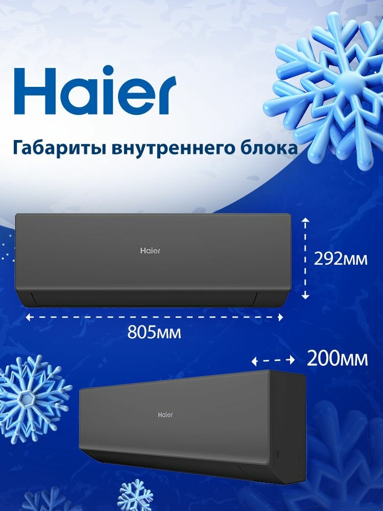 Новая инверторная сплит-система Haier QUANTUM Inverter AS25HQJ1HRA-B/1U25HQJ1FRA, для помещений 25 кв. м, черного цвета