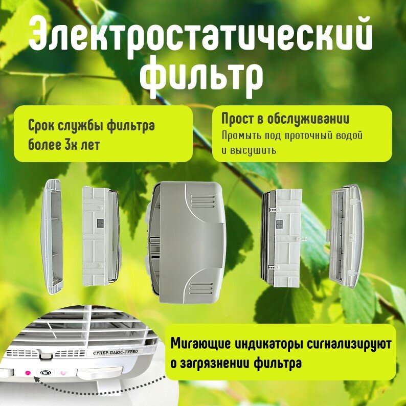Отзывы на Очиститель воздуха СУПЕР ПЛЮС "Турбо", электростатический, настенный, настольный, 4 режима работы, зеленый