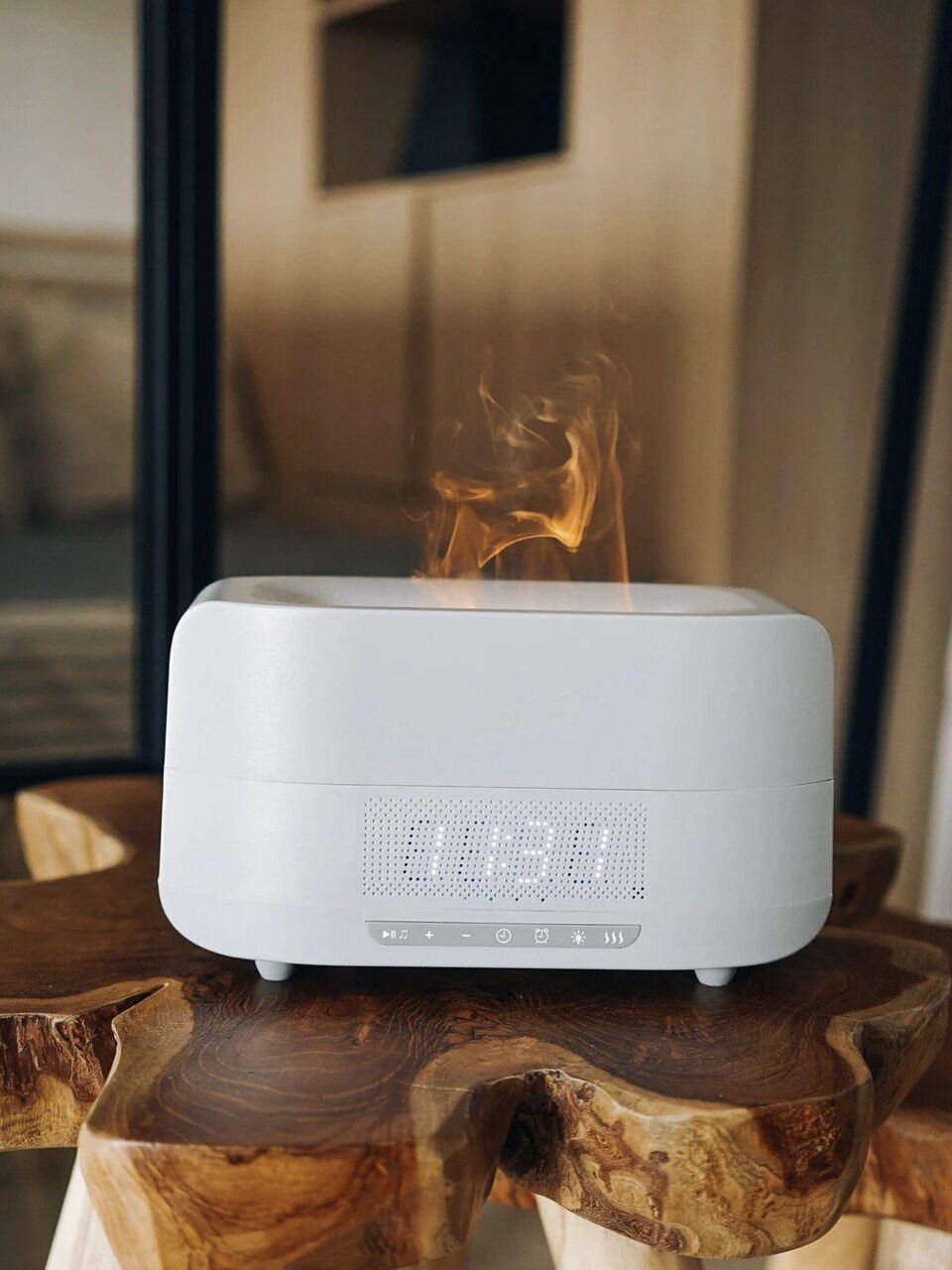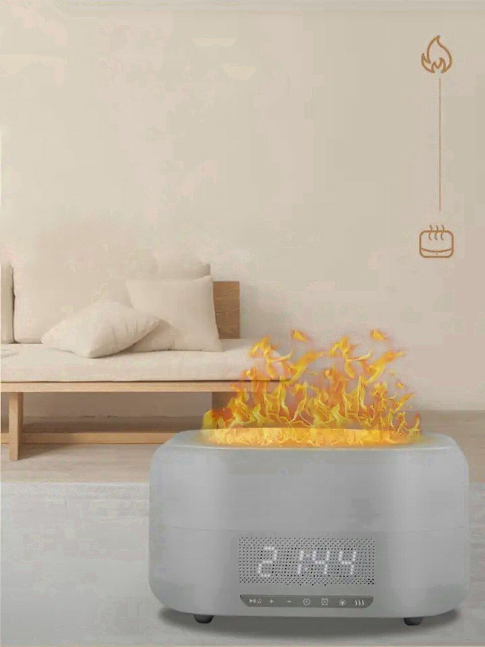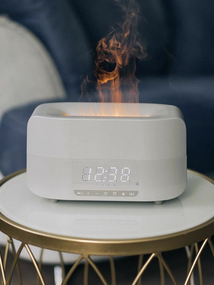 Отзывы на Увлажнитель воздуха с эффектом пламени, аромадиффузор с часами и функцией Bluetooth колонкой