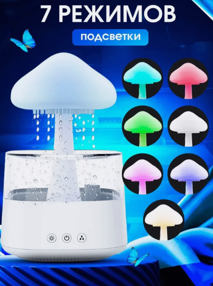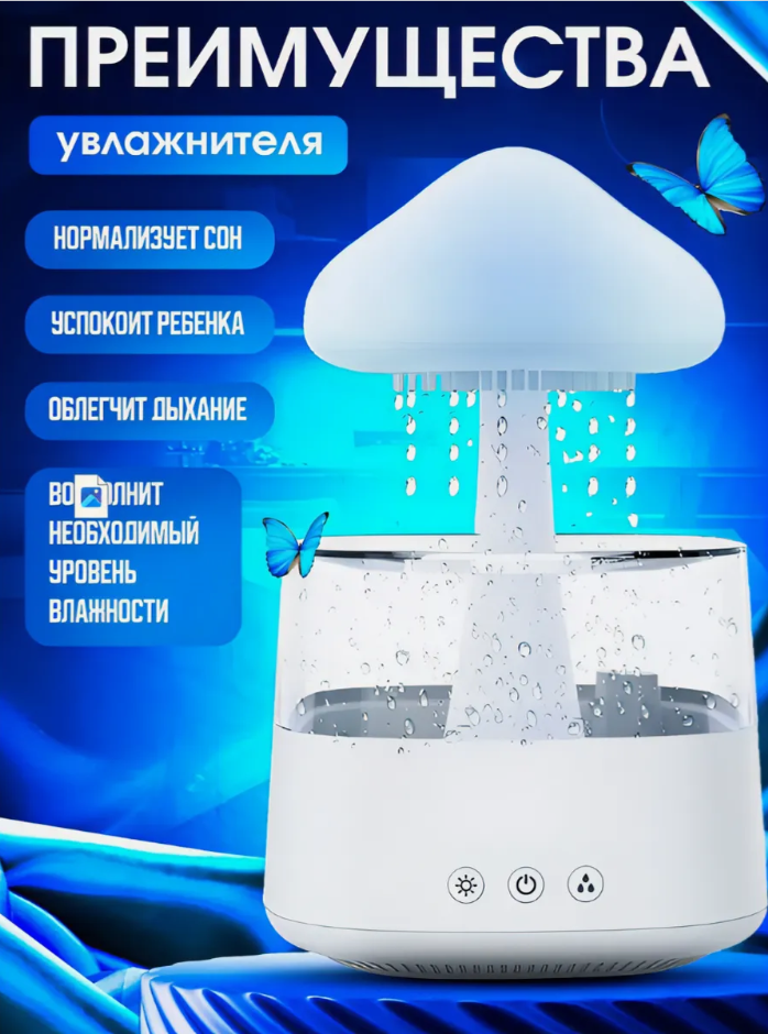 Отзывы на Увлажнитель воздуха "Гриб с эффектом дождя", ультразвуковой, белый