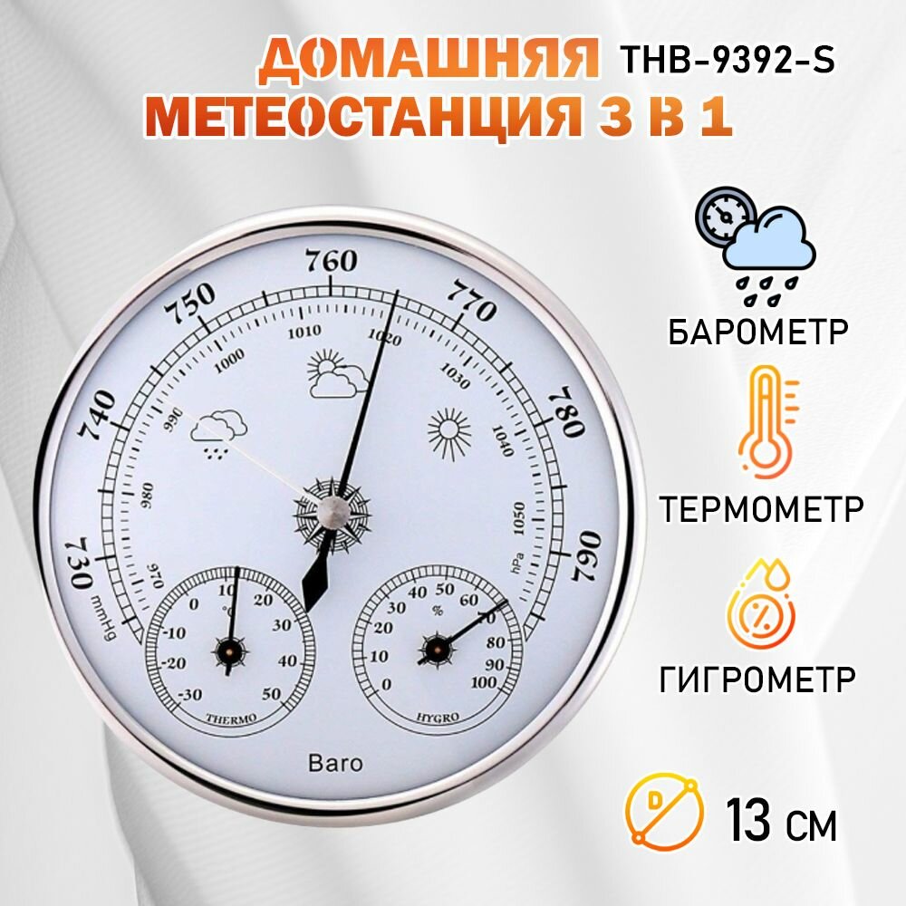 10 цен на Барометр THB-9392-S серебристый, с термометром и гигрометром