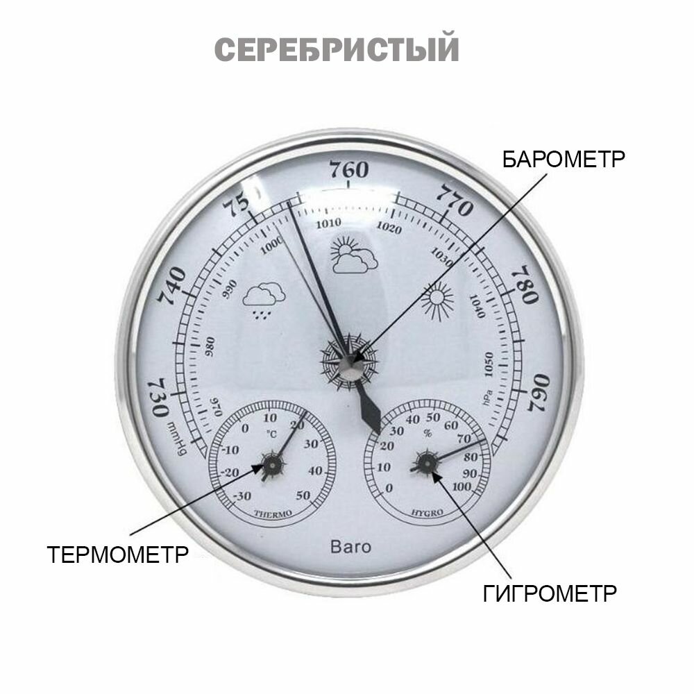 Барометр THB-9392-S серебристый, с термометром и гигрометром информация: