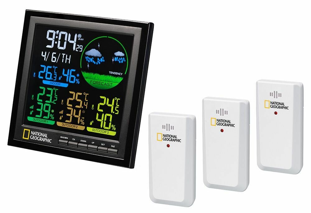National Geographic Метеостанция с цветным дисплеем и тремя датчиками информация: