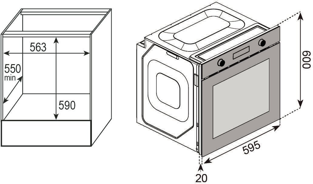 Духовой шкаф встраиваемый LEX EDM 077 C IV, 60 см, с конвекцией, механические ручки, объем 60 л, аналоговый таймер, телескопические направляющие.