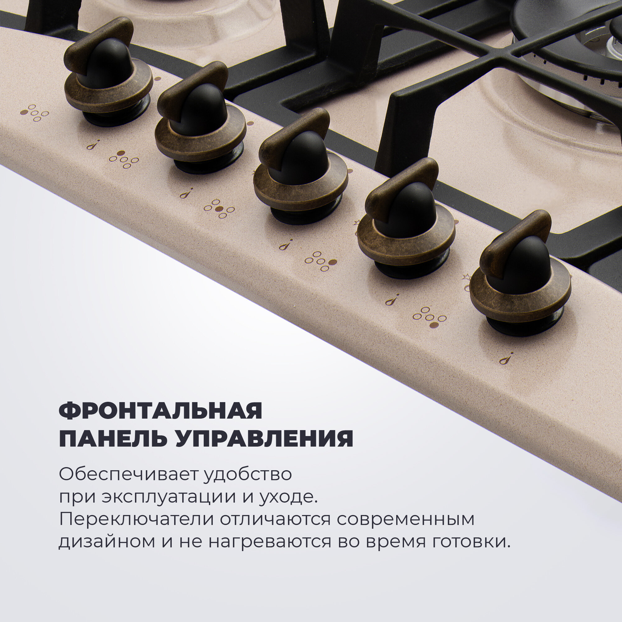 Газовая варочная панель DeLonghi OWF 57 PRO RUS, 75 см, бежевая, WOK-конфорка, автоматический розжиг, газ-контроль информация: