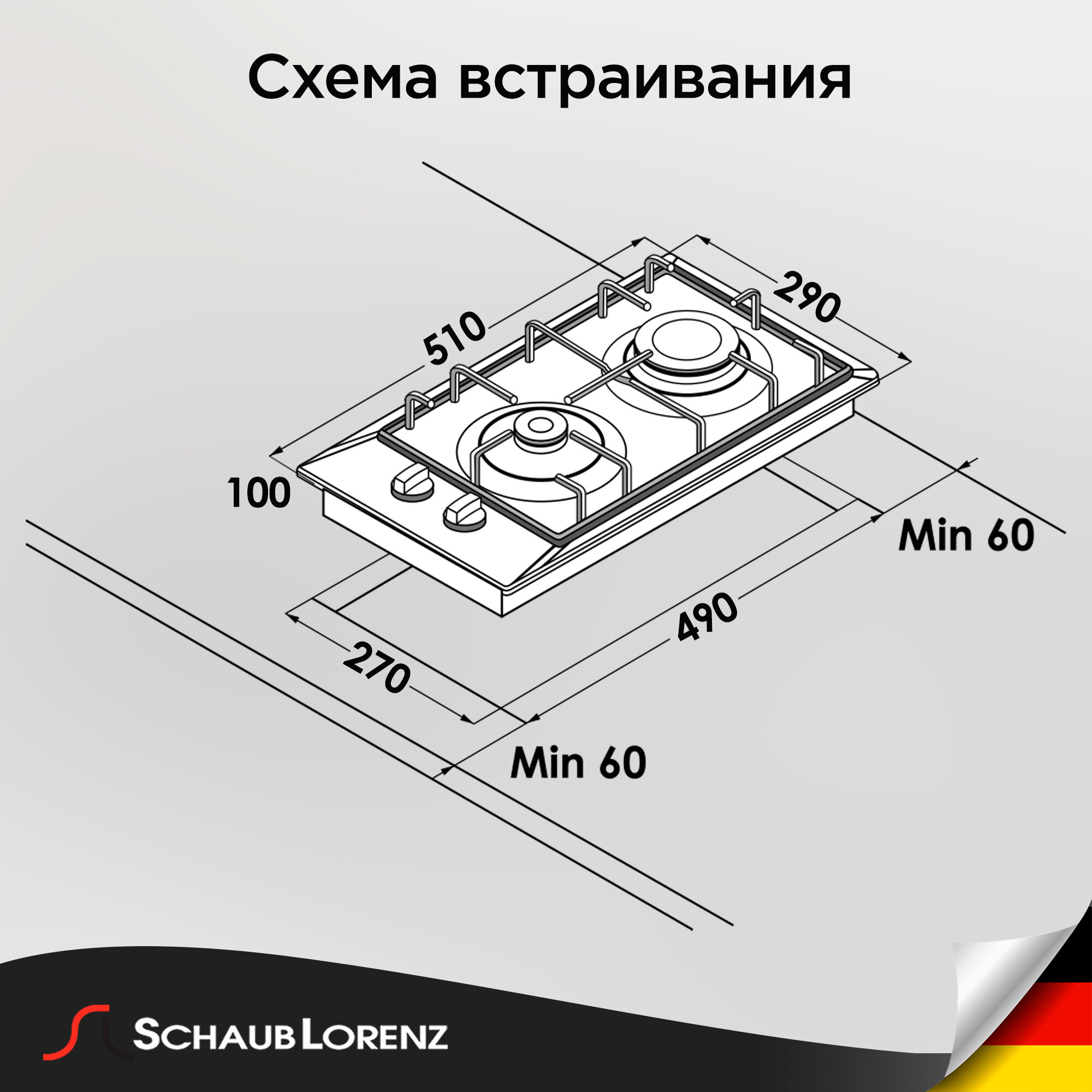 Газовая встраиваемая варочная панель Schaub Lorenz SLK GW6521, 60 см, газ-контроль, электроподжиг, WOK