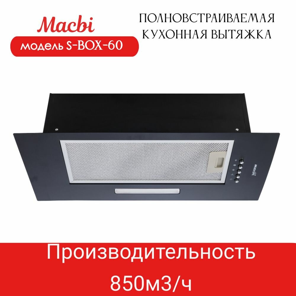 10 цен на Вытяжка кухонная MACBI полновстраиваемая 60см S-BOX-60 BLACK 850 м3/ч Черная