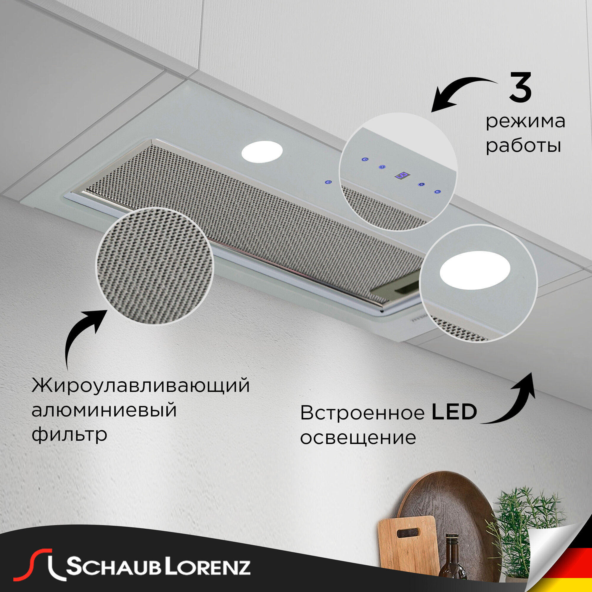 Отзывы на Вытяжка кухонная встраиваемая Schaub Lorenz SLD EL6027, корпус из стекла, мощность 1100 м3/ч