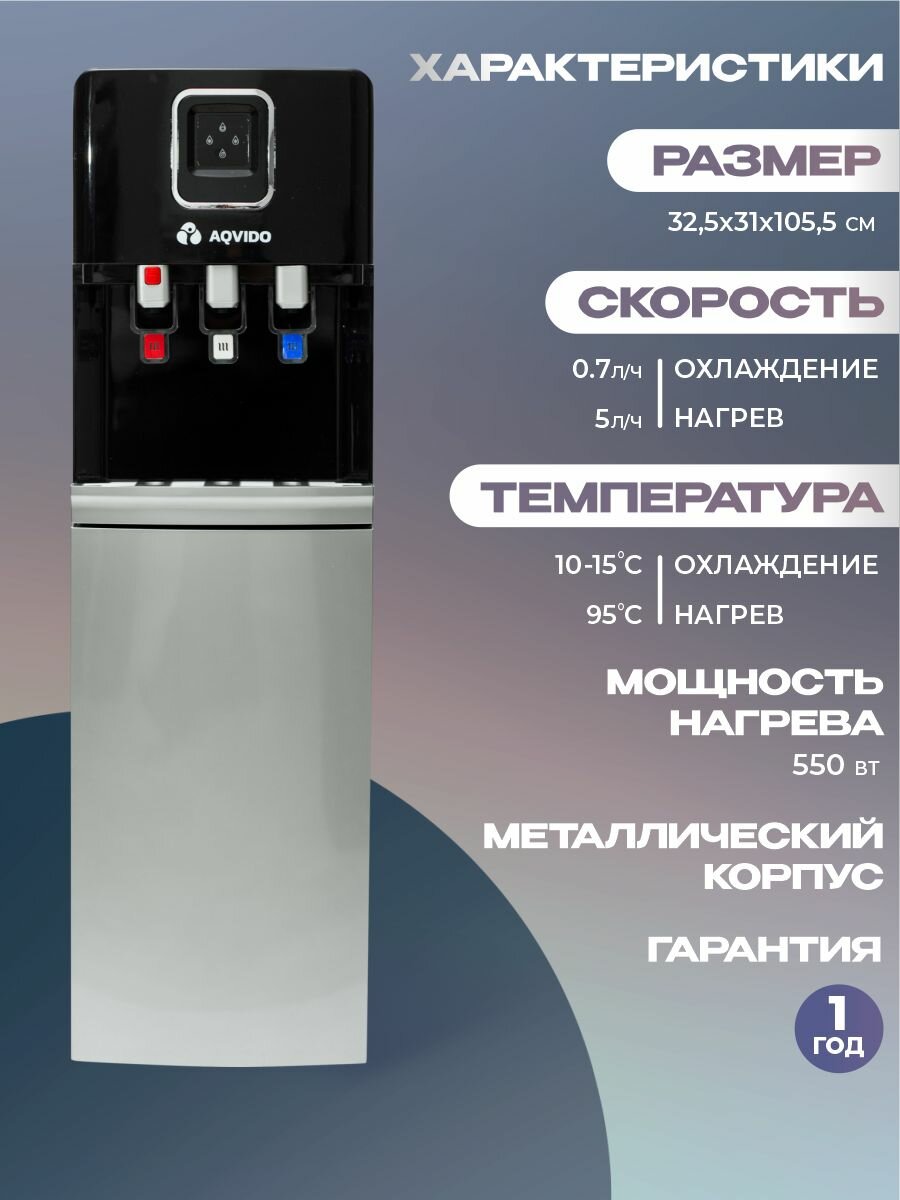 Кулер для воды напольный с нагревом и электронным охлаждением, нижней загрузкой бутыли. AQVIDO BSY-818L Черно-серебристый информация: