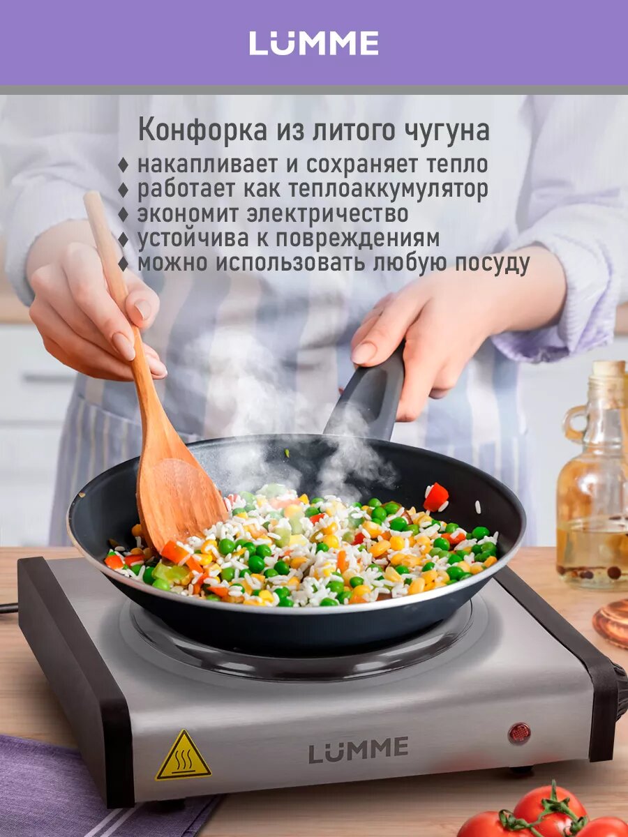 10 цен на Электроплита LUMME "LU-3637", чугун, нержавеющая сталь, дисковая, 1 конфорка