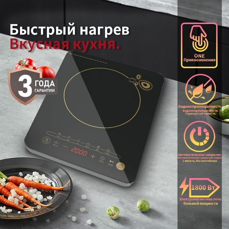 10 цен на Настольная индукционная плита Black, 1800Вт, сенсорное управление