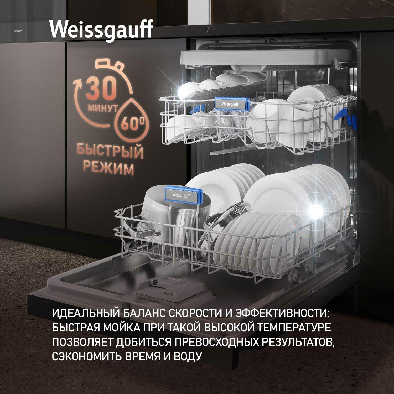 Посудомоечная машина Weissgauff DW 6039 Touch Dual Wash Black, До 15 комплектов посуды информация: