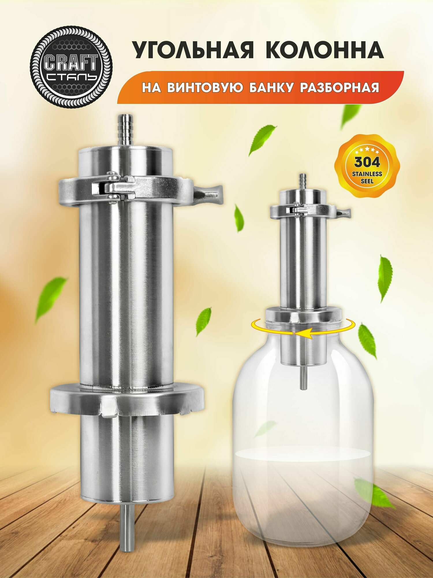 Отзывы на Угольная колонна на винтовую банку разборная 304 пищевой стали