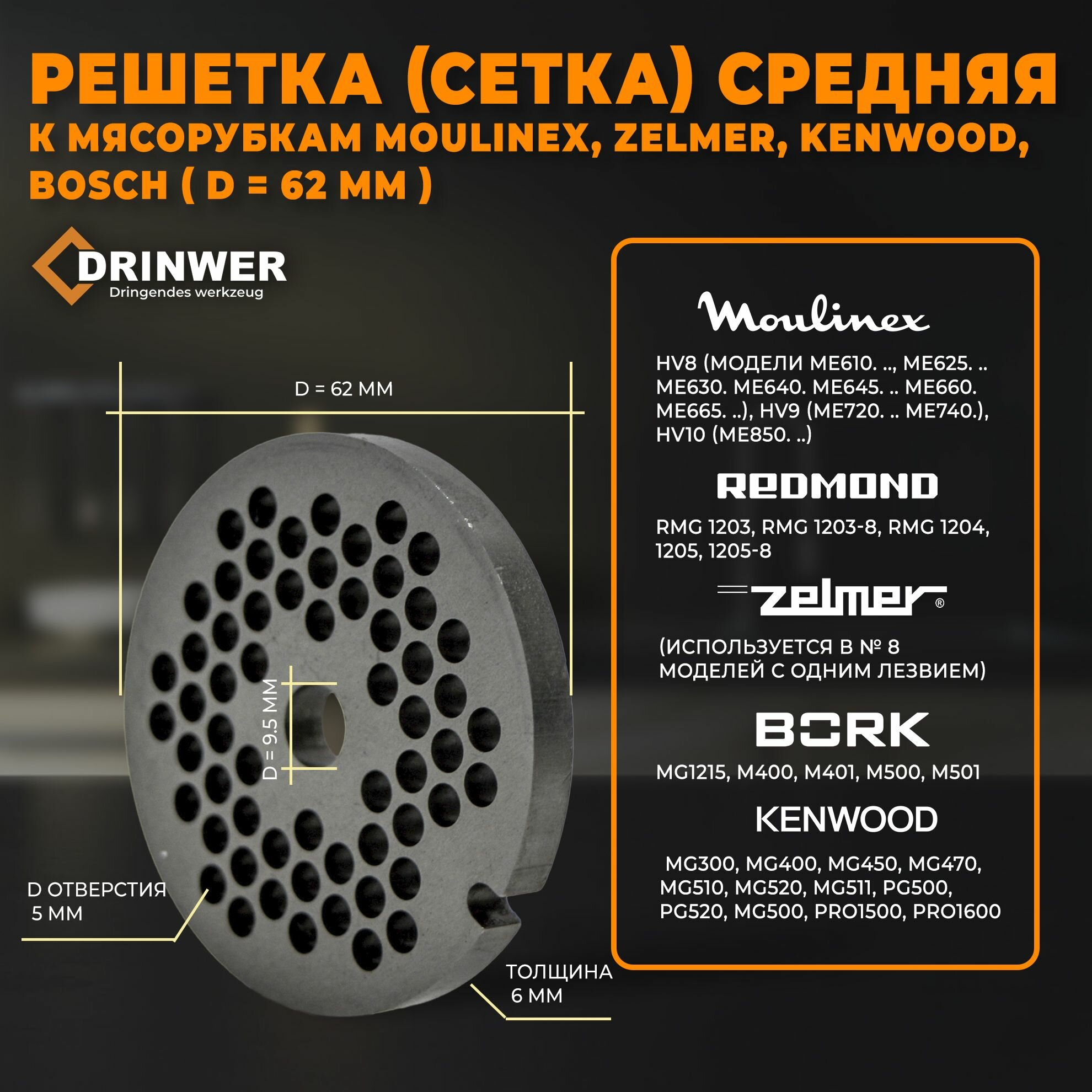 10 цен на Решетка (сетка) средняя к мясорубкам Moulinex, Zelmer, Kenwood, Bosch, диаметр 62 мм