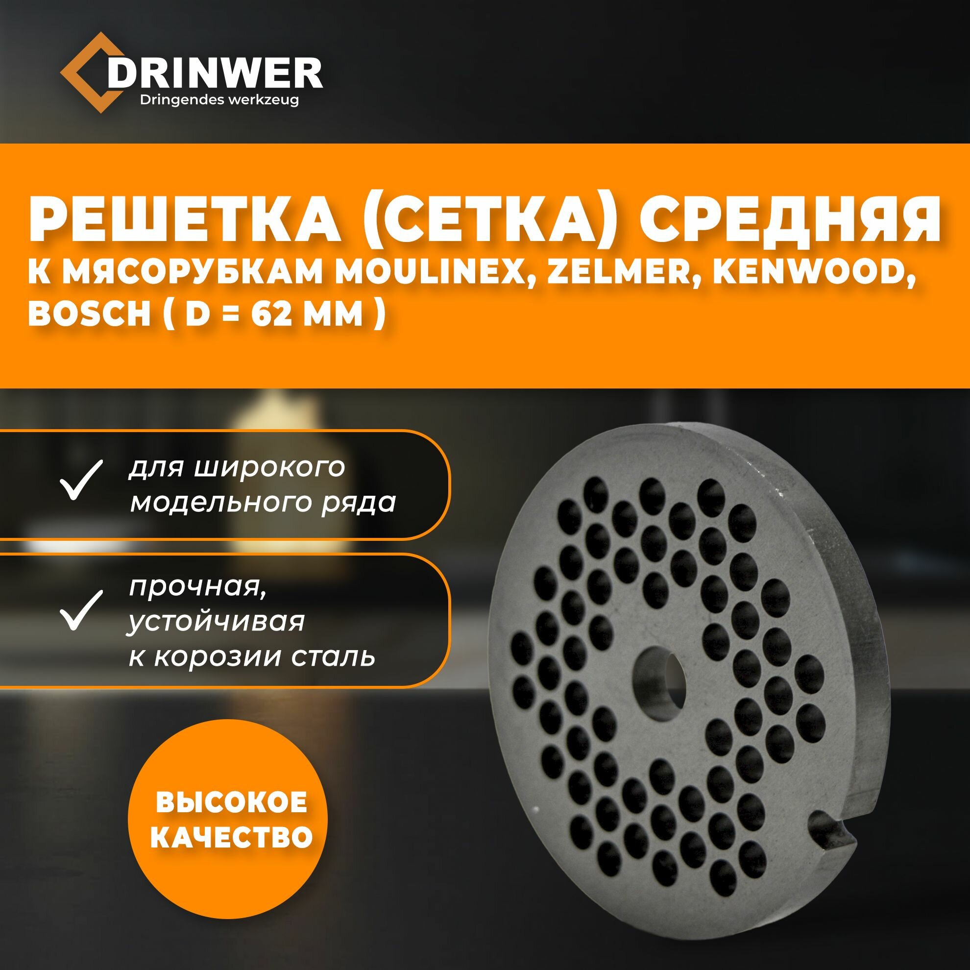 Отзывы на Решетка (сетка) средняя к мясорубкам Moulinex, Zelmer, Kenwood, Bosch, диаметр 62 мм