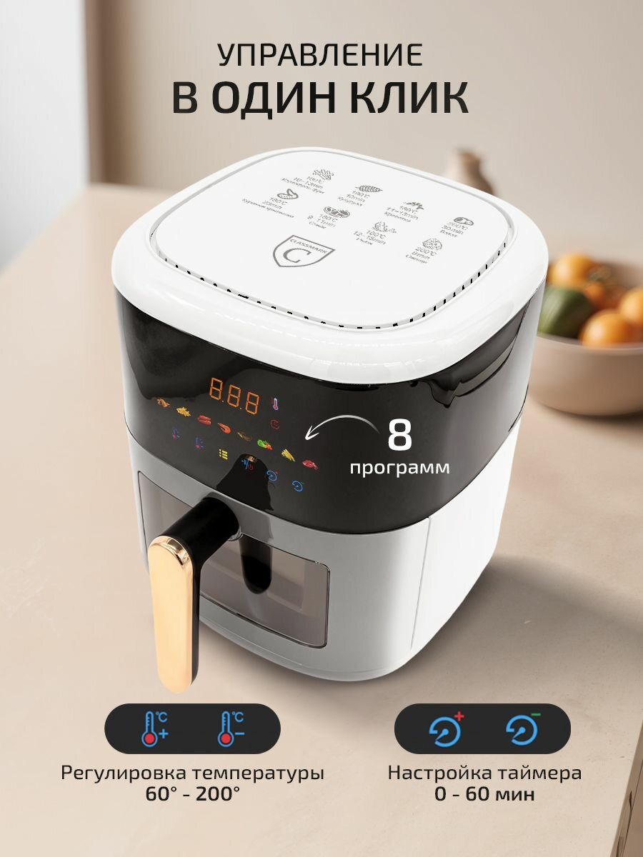 Отзывы на Аэрогриль электрический Classmark аэрофритюрница для дома, мощность 1400 Вт, 8 программ приготовления, белый