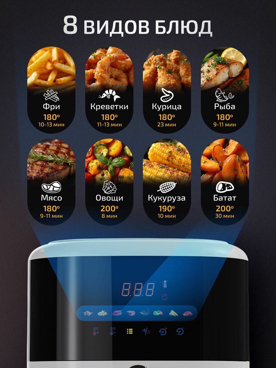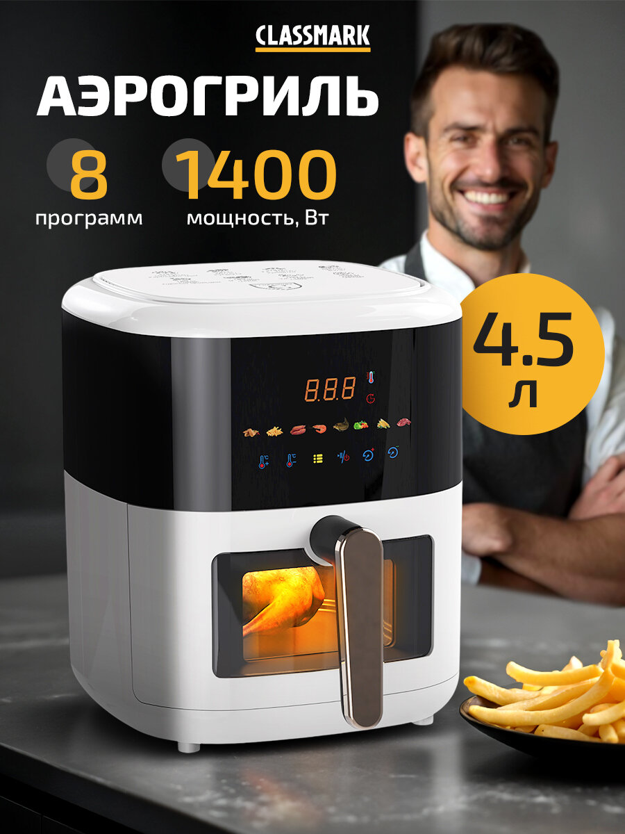 Аэрогриль электрический Classmark аэрофритюрница для дома, мощность 1400 Вт, 8 программ приготовления, белый информация:
