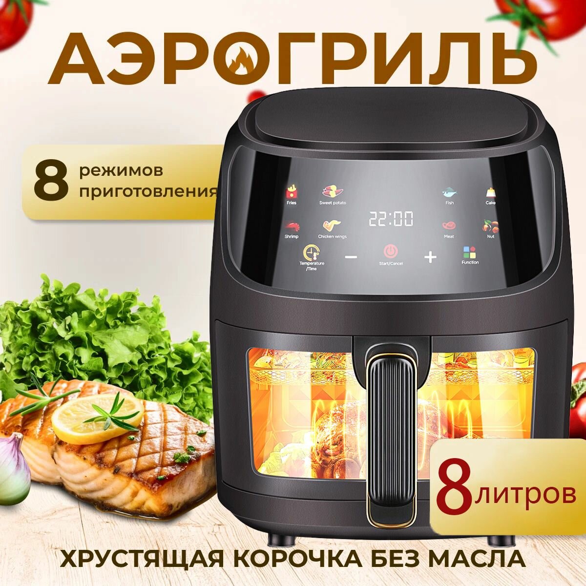 Отзывы на Аэрогриль электрический 8 литров, 8 в 1 аэрогриль электрический с сенсорной панелью, с функциями фритюрницы, гриля