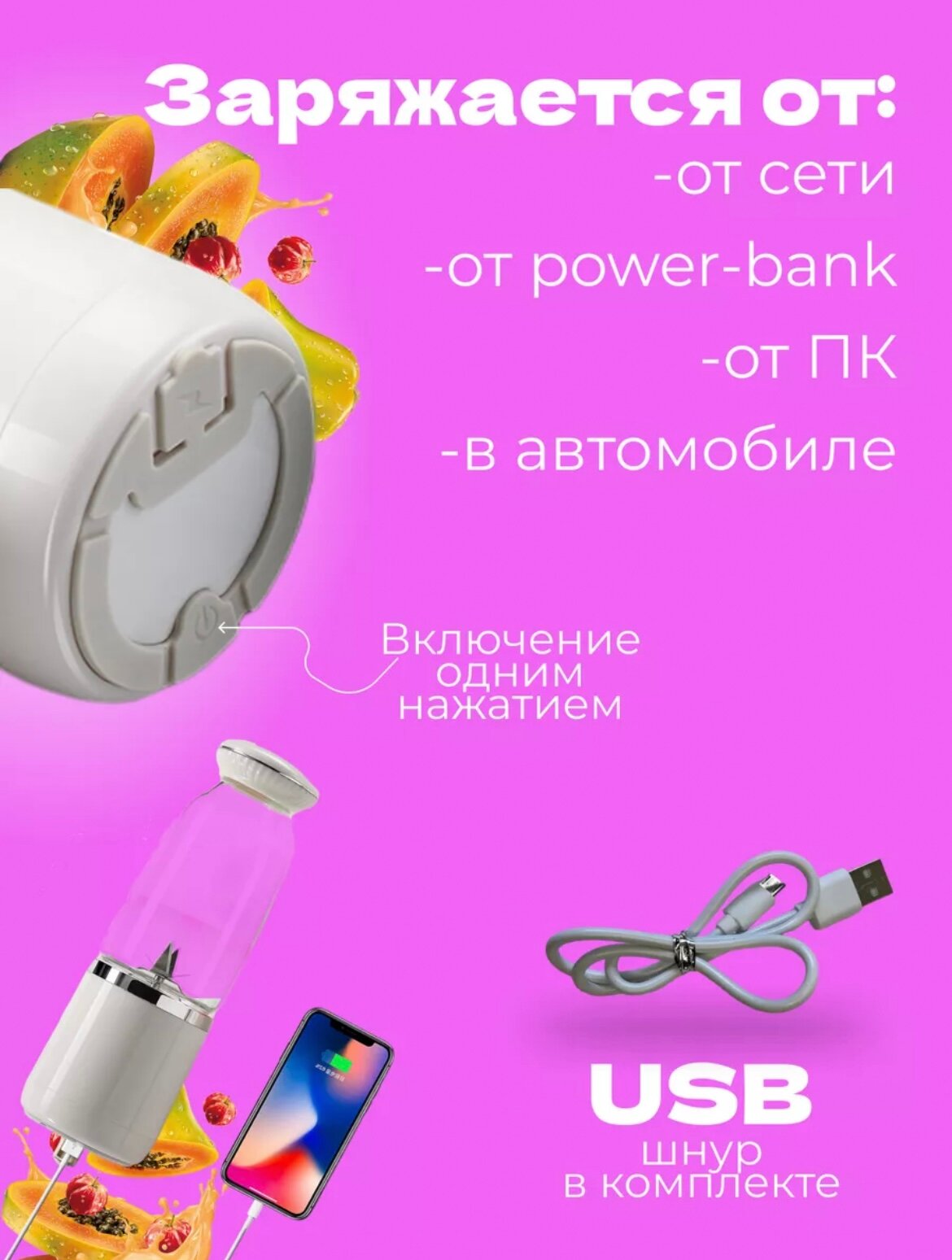 Отзывы на Мини блендер портативный беспроводной для смузи, дорожный блендер