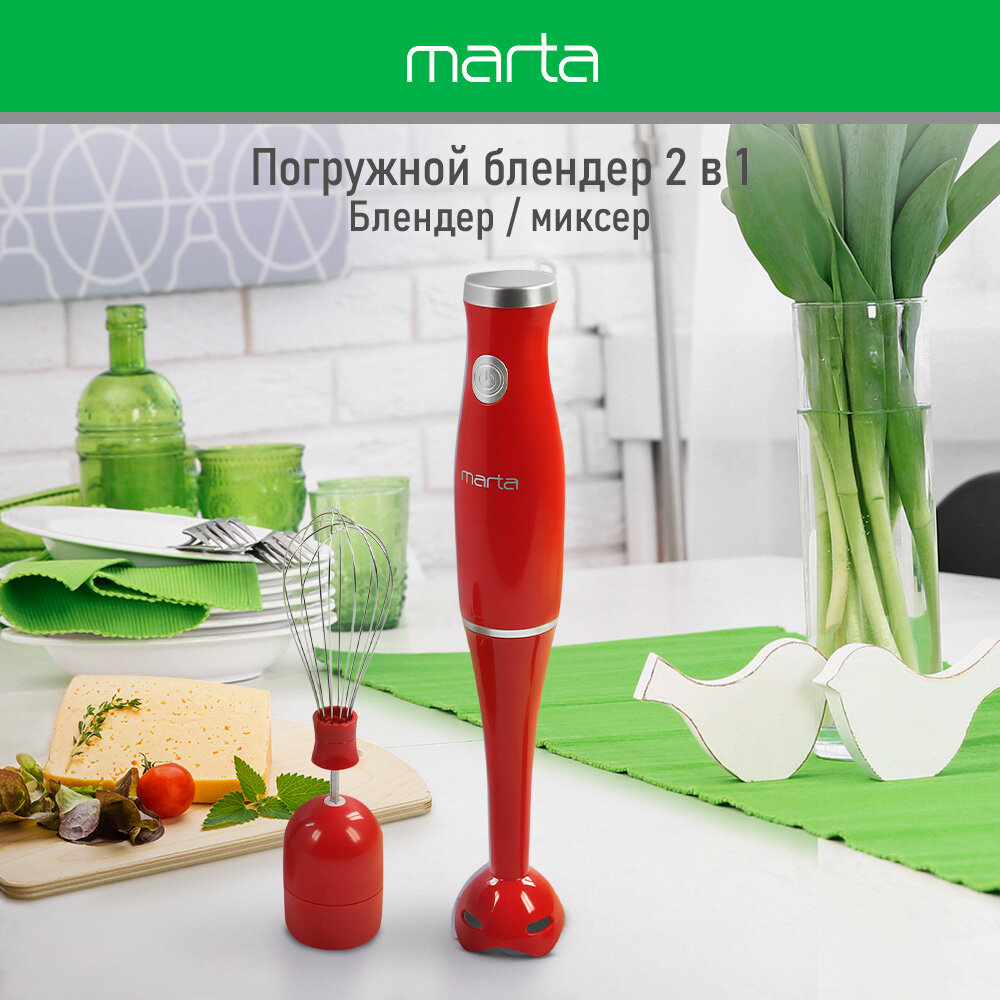 Погружной блендер Marta MT-1573, мощность 900/1200Вт, металлический корпус, красный