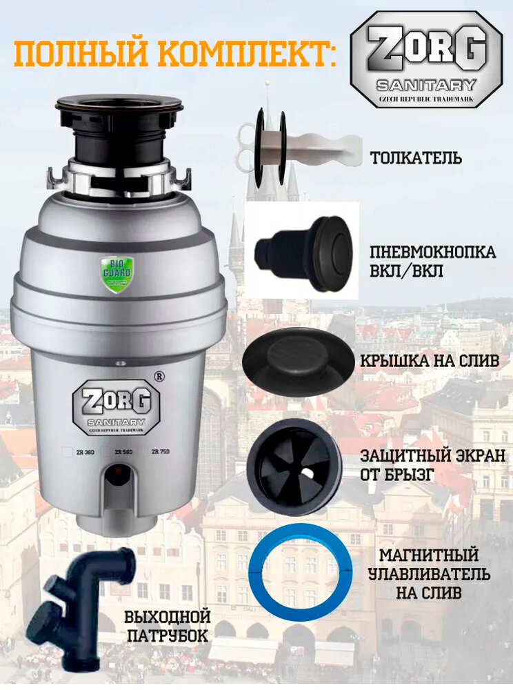 Измельчитель пищевых отходов с магнитным улавливателем ZorG ZR-75 D GRAFIT в цвете графит, 750Вт информация: