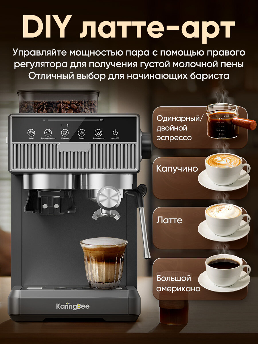 10 цен на Полуавтоматическая кофемашина KaringBee CM5520 черный, молотый кофе стандартого/двойного+капучинатор