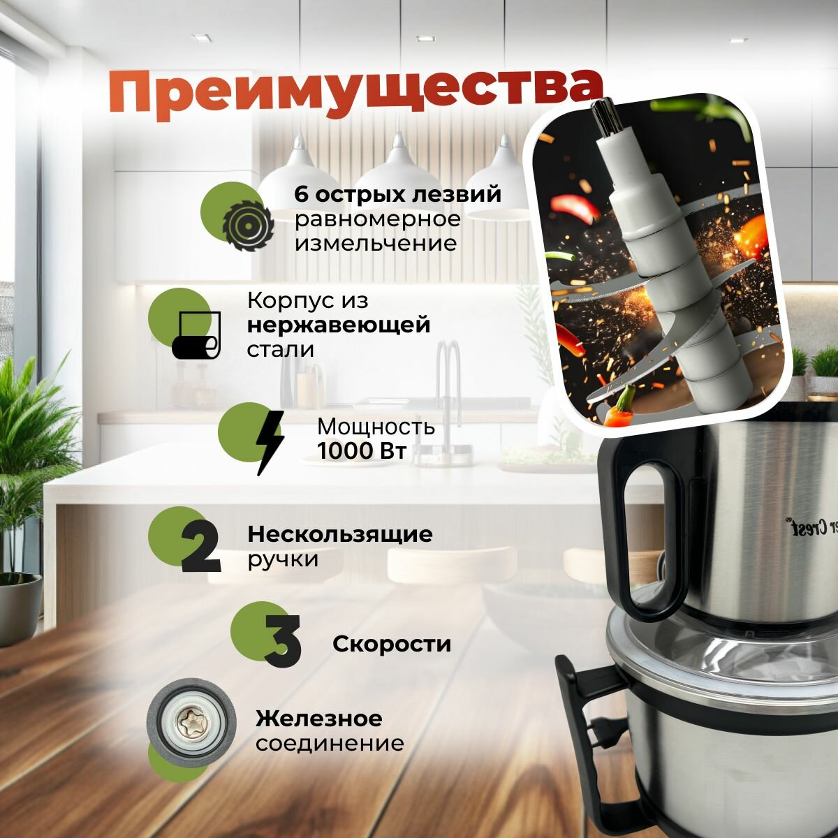 Электрический измельчитель кухонный 3,5 литра, мощный 1000 Вт информация: