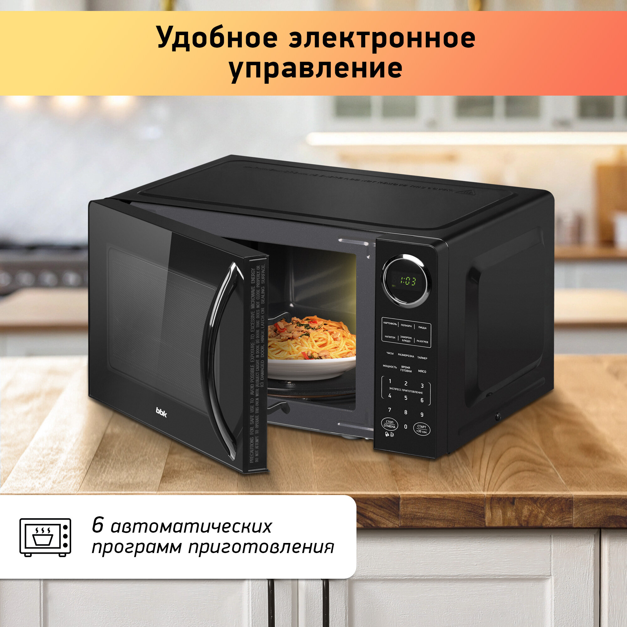 Микроволновая печь BBK 23MWS-907S/B черный, объем 23 л, мощность 900 Вт информация: