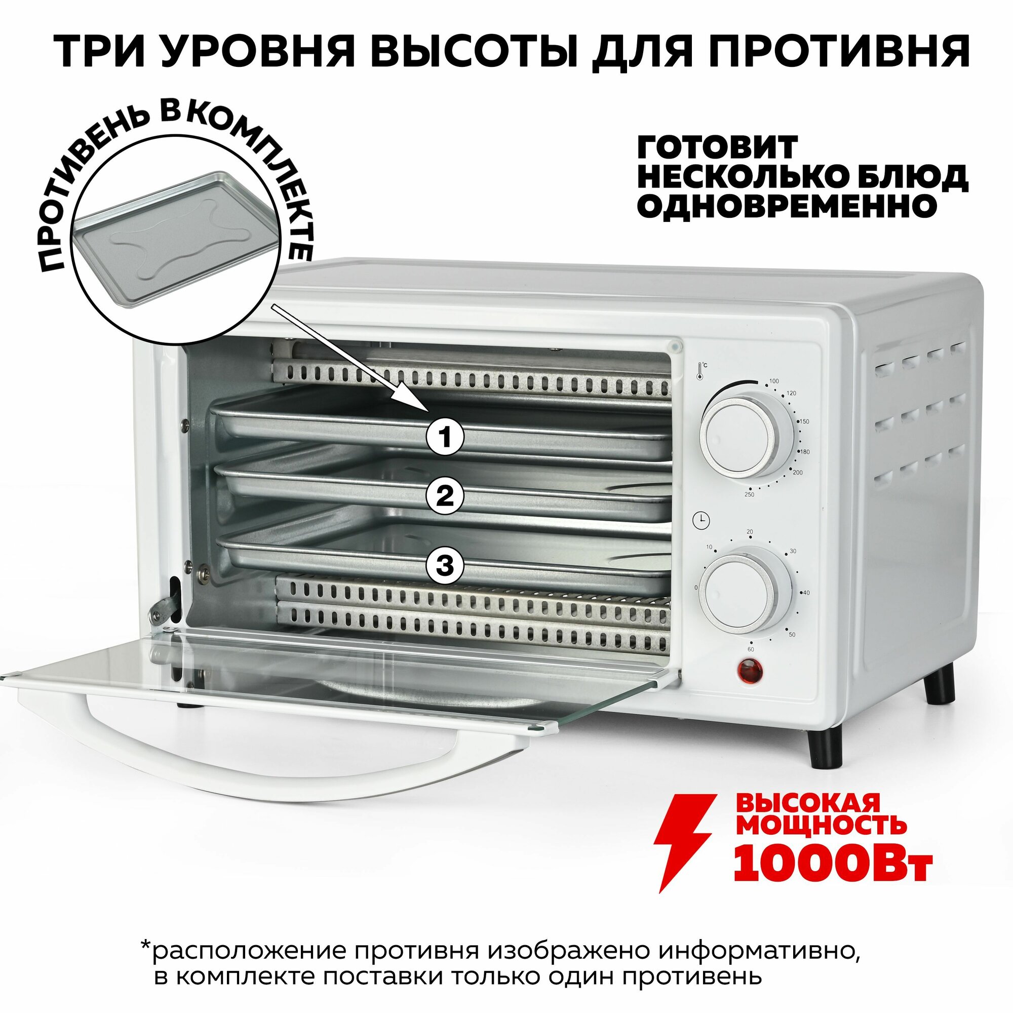 10 цен на GFGRIL Многофункциональная мини-печь GFO-09W, 9л,1000 Вт, температура до 250С, таймер на 60 мин, противень, решетка