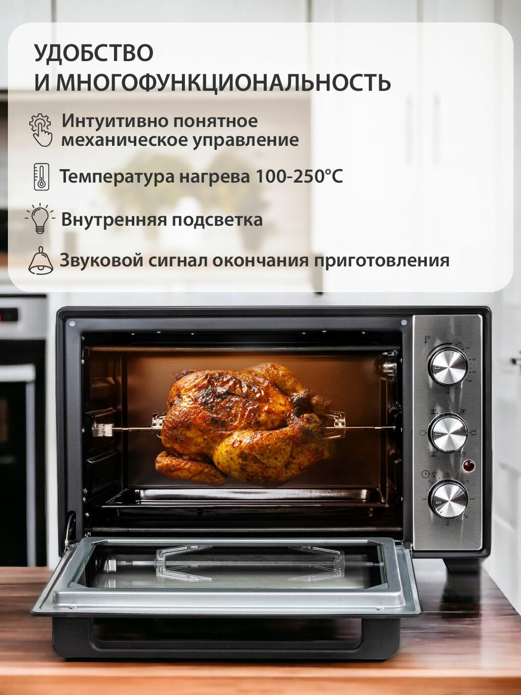 Отзывы на Мини печь электрическая 32л с КОНВЕКЦИЕЙ, ГРИЛЕМ Pioneer MO5018G, вертел, форма для пиццы, насадка для шашлыка, 1600 Вт