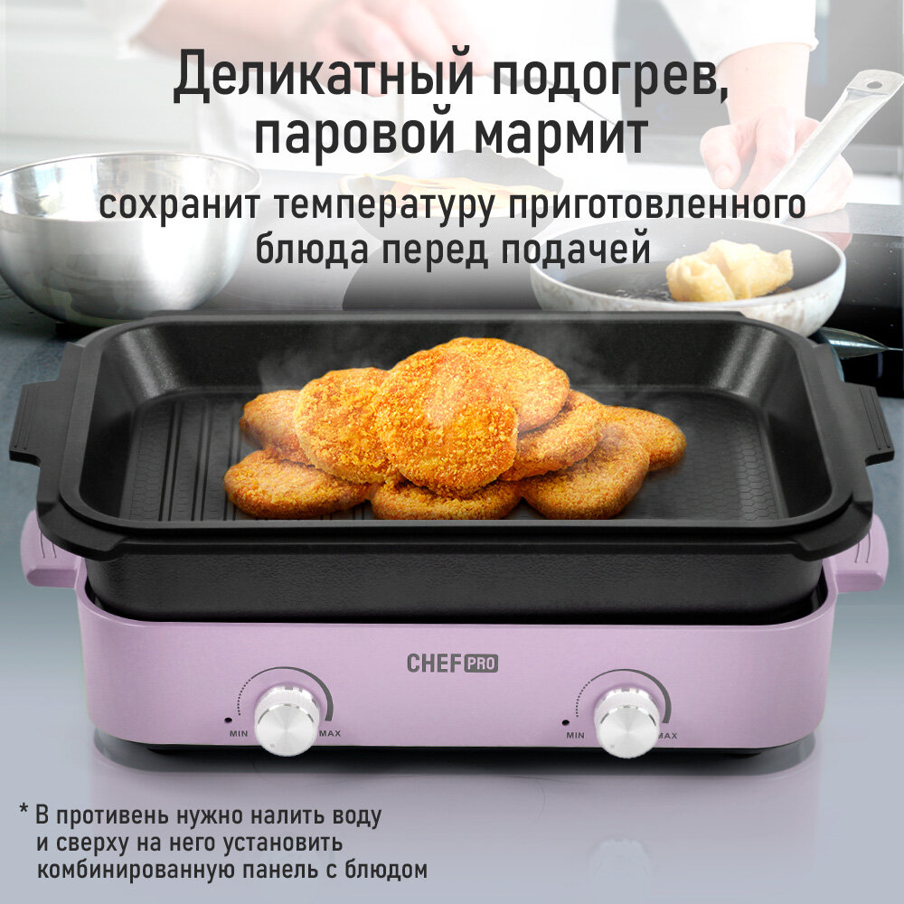 Отзывы на Гриль электрогриль 5 в 1 CHEF PRO CF-MC901A со сменными панелями розовый опал
