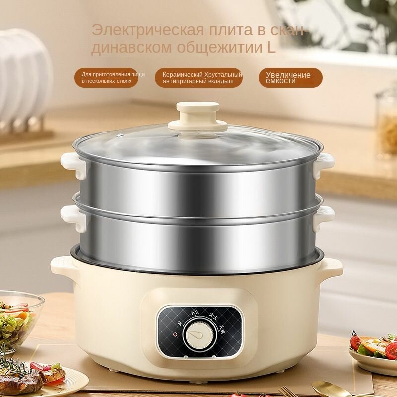 10 цен на 3-слойная электрическая пароварка из нержавеющей стали, более полезная, чем пластиковая, большая емкость, высокая мощность 1350 Вт, бежевый