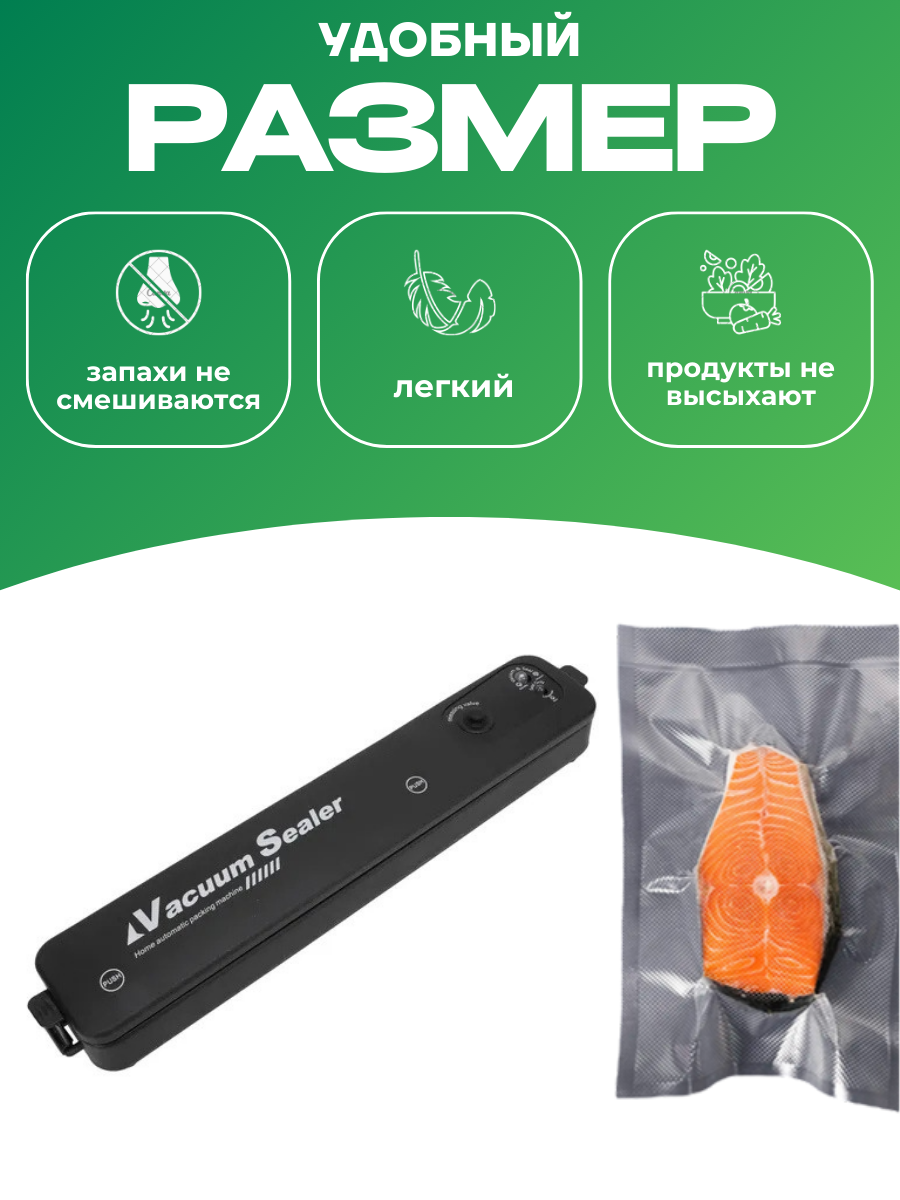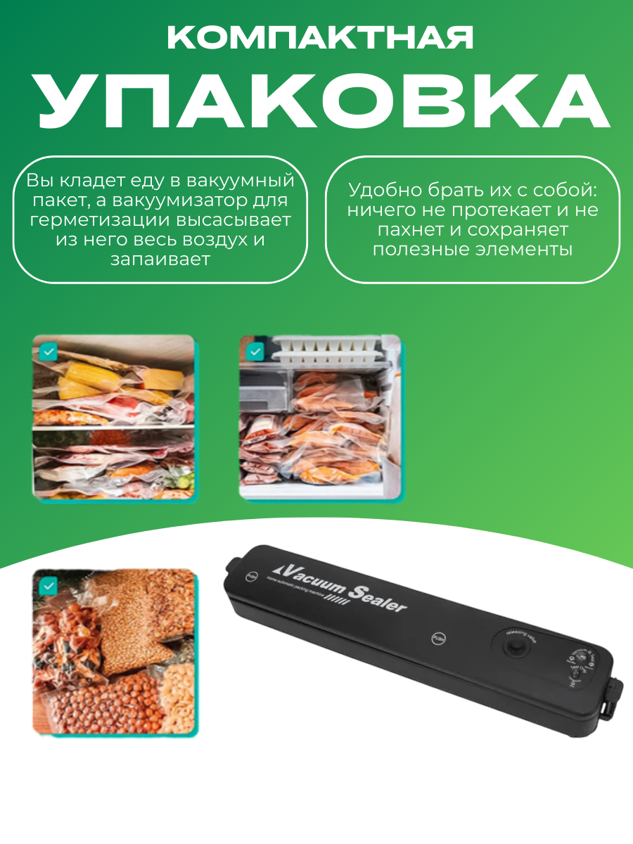 Характиристики этого товара не найдены!Отзывы на Вакуумный упаковщик Vacuum Sealer Запайщик пакетов / Вакууматор для герметизации
