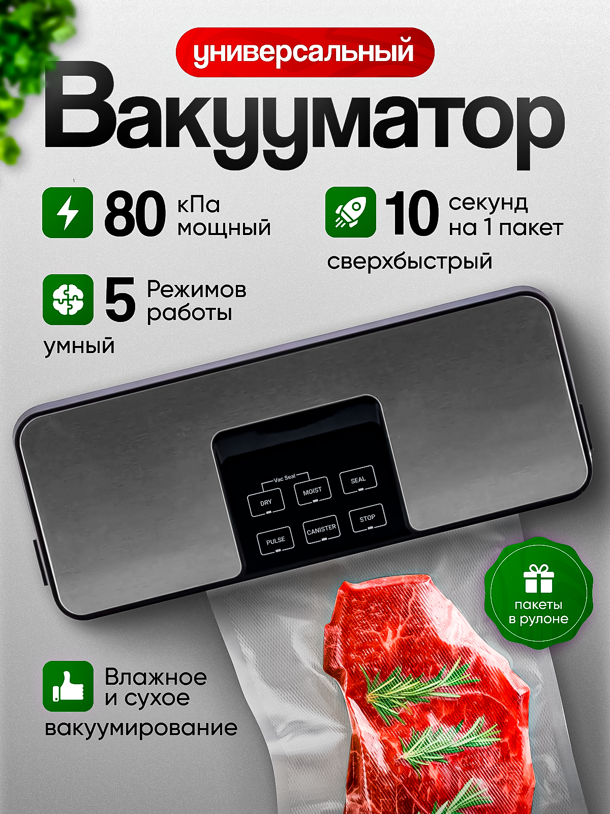 10 цен на Вакууматор, для продуктов, серая, с влажной и сухой запайкой VS8861
