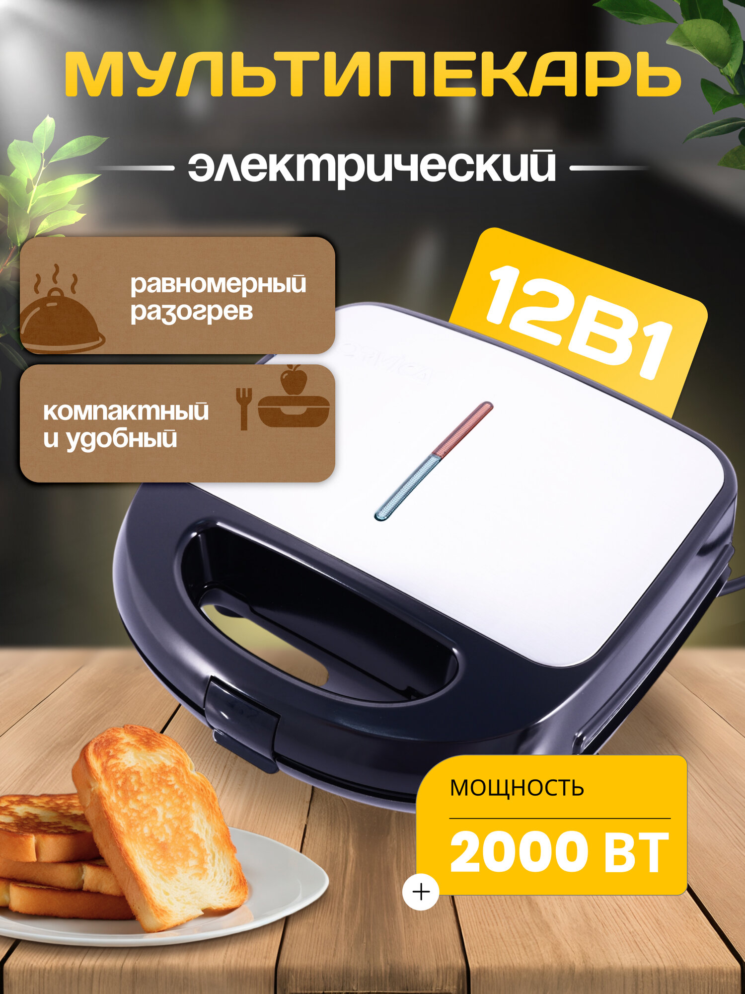 Мультипекарь 7в1, профессиональный, с 7 панелями, мощность 2000 Вт, гриль