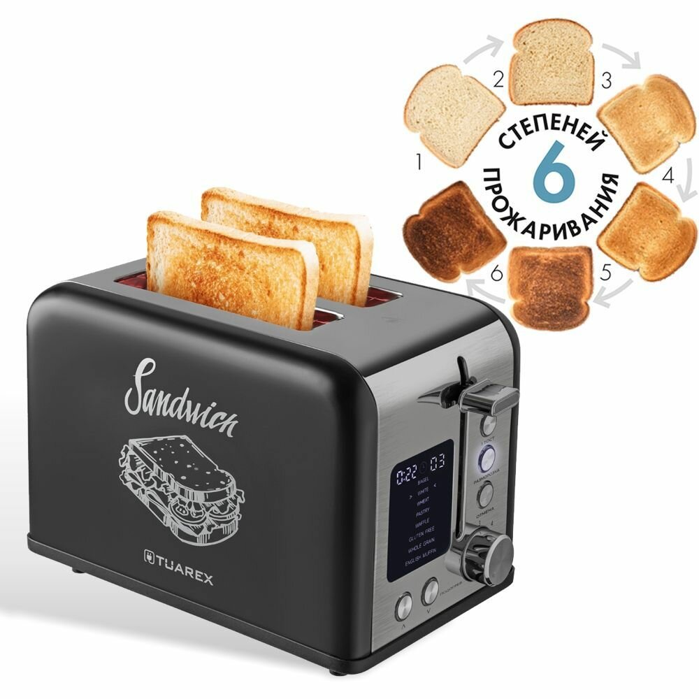 Отзывы на Тостер для хлеба TUAREX TK-6003, 900 Вт, 6 степеней поджаривания, разморозка, подогрев, отмены