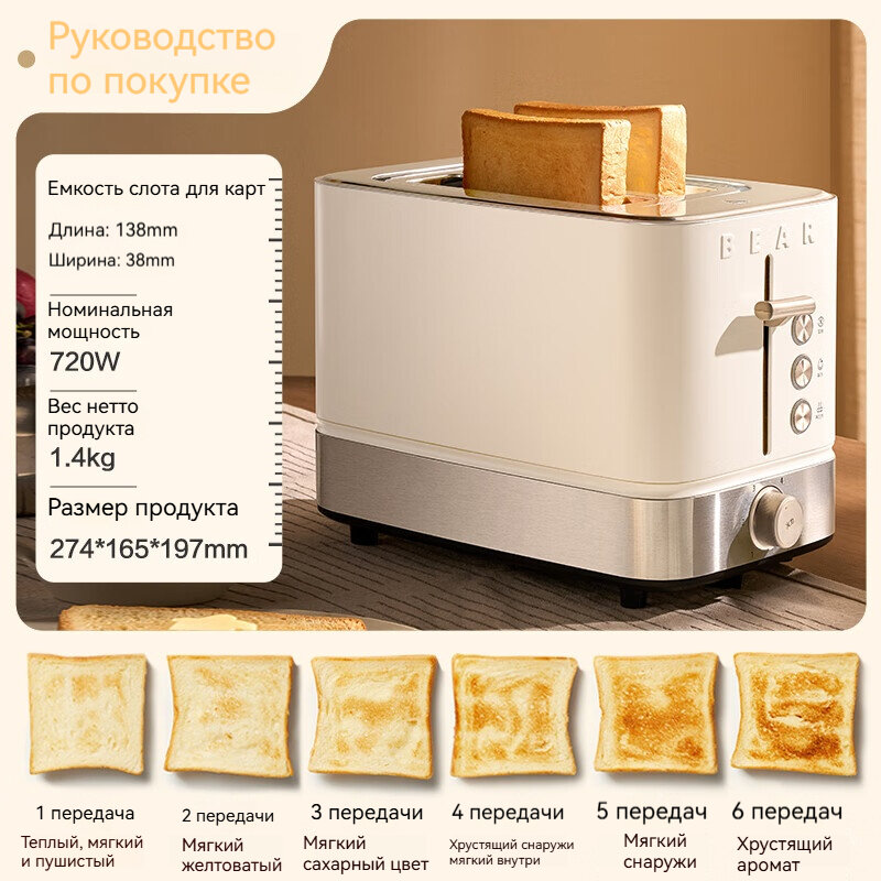 Отзывы на Тостер Bear, молочно-белый, 27*16*20 см, мощность 720 Вт, модель: DSL-F02H5