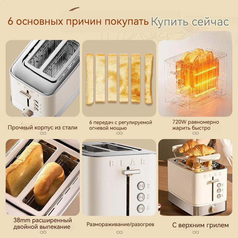 10 цен на Тостер Bear, молочно-белый, 27*16*20 см, мощность 720 Вт, модель: DSL-F02H5