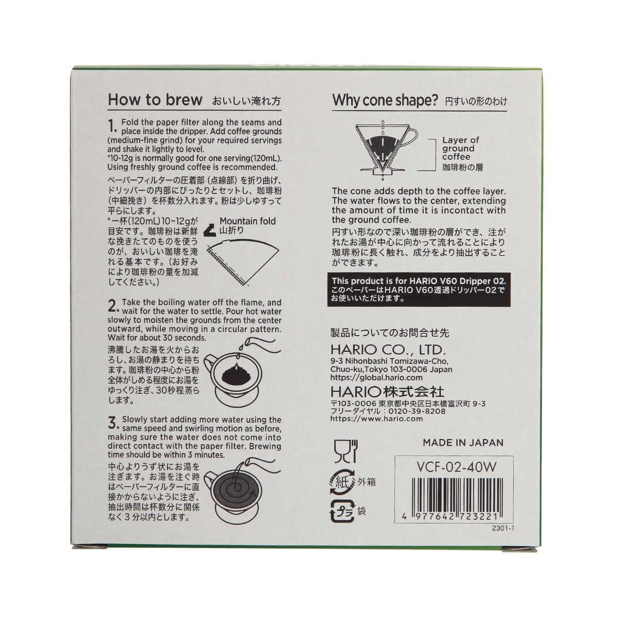 Фильтры HARIO бумажные белые для воронок (40 шт.) картонная коробка VCF-02-40W информация: